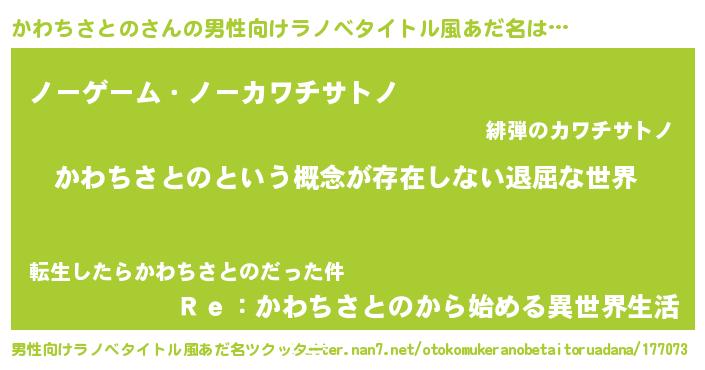 | 女子向けラノベタイトル風あだ名 | 『かわちさとのの契約王妃』 |