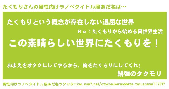 | 意味不明あだ名 | 『住所不定無職たくもり(71歳)』 |