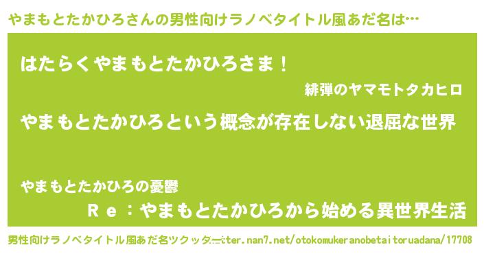 | 女子向けラノベタイトル風あだ名 | 『異世界で失敗しない100のやまもとたかひろ』 |