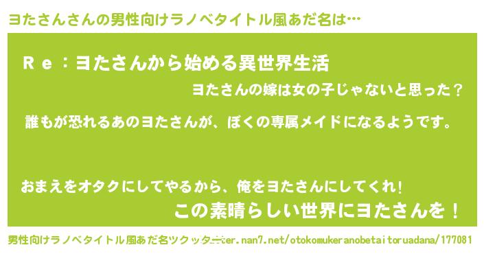 | 胡散臭い通販商品みたいなあだ名 | 『前代未聞の健康食品…その名も「ヨたさん」』 |