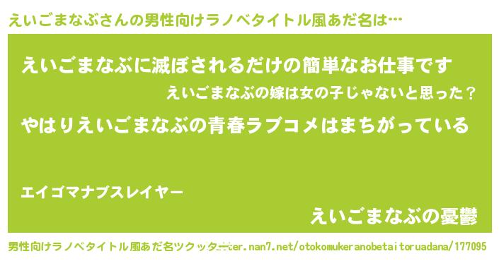 | ファンタジー風あだ名 | 『エターナルエイゴマナブー』 |