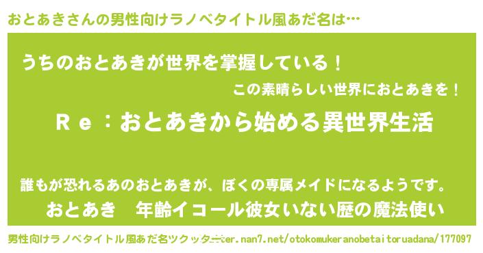 | 女子向けラノベタイトル風あだ名 | 『おとあきストレイドッグス』 |