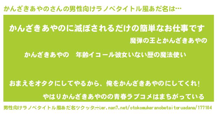 | 女子向けラノベタイトル風あだ名 | 『かんざきあやのの玉の輿計画!』 |
