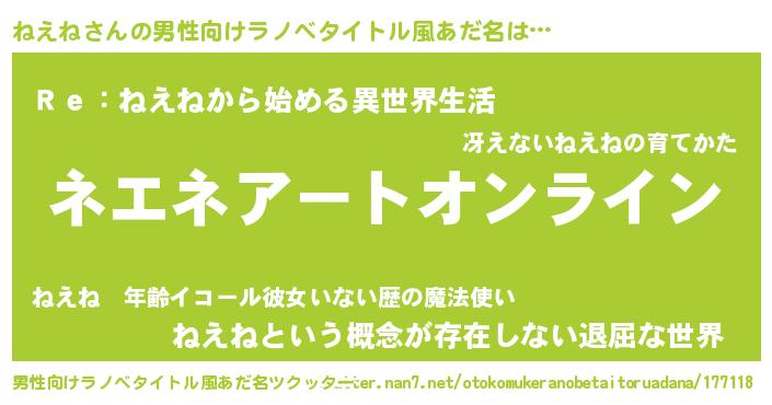 | ヘコむあだ名 | 『ねえにー』『ねえね(笑)』『ねえを』 |