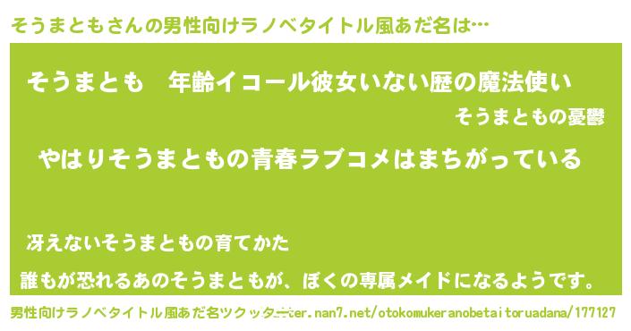 | ヘコむあだ名 | 『牛乳』『そうまとも(小並感)』 |