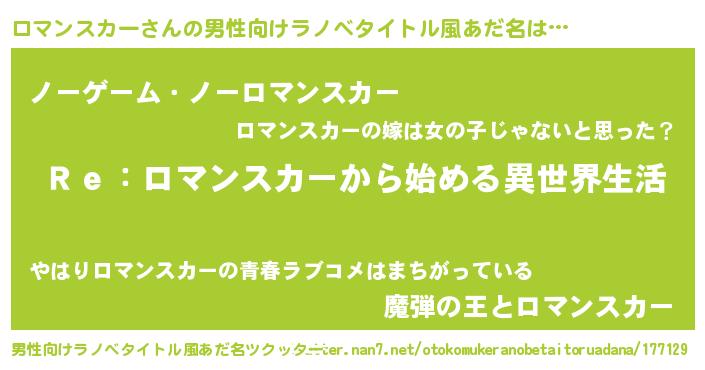 | ヘコむあだ名 | 『ロマを』『酢こんぶ』『ロマもー』 |