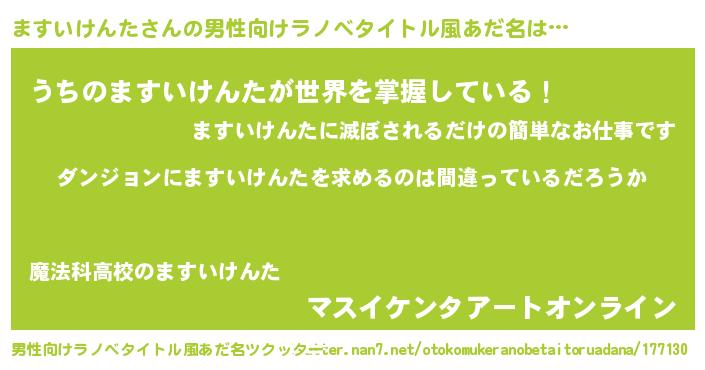 | 女子向けラノベタイトル風あだ名 | 『ますいけんたは平凡を望む』 |