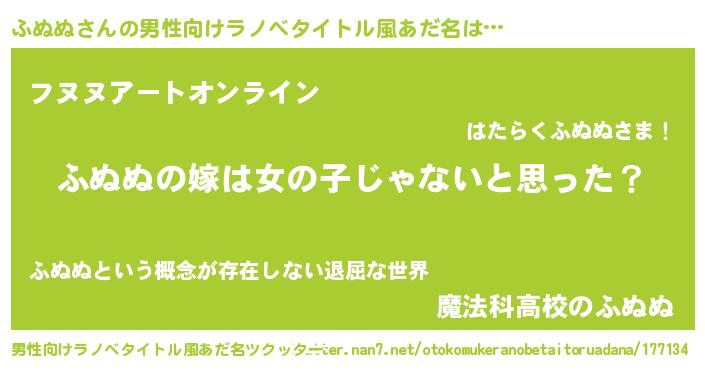 | 意味不明あだ名 | 『とにかく怪しいふぬぬ』『自称ふぬぬ』 |