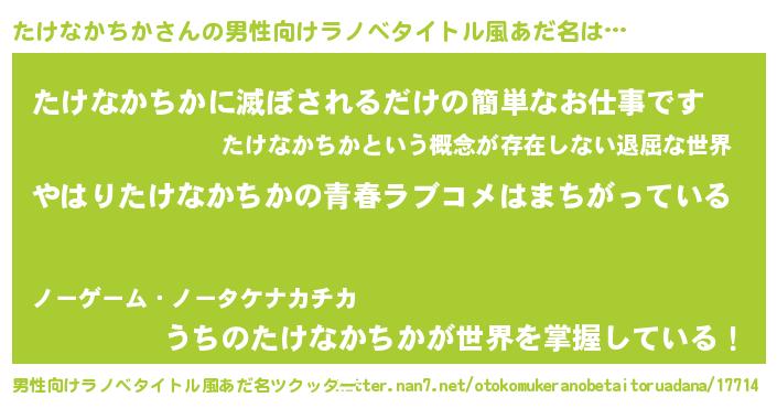 | ファンタジー風あだ名 | 『エターナルタケナカチカー』 |