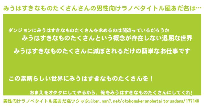 | 胡散臭い通販商品みたいなあだ名 | 『全米が絶賛したサプリメント…その名も「みうはすきなものたくさん」』 |