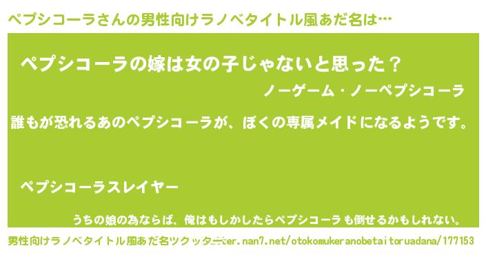 | 女子向けラノベタイトル風あだ名 | 『ペプシコーラの契約王妃』 |