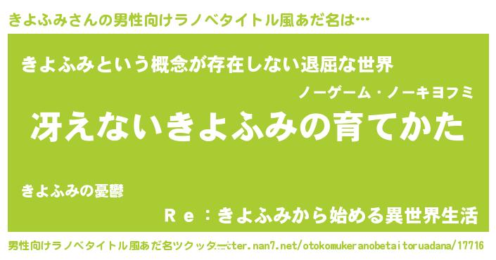 きよふみさんの男性向けラノベタイトル風あだ名をツクッター!