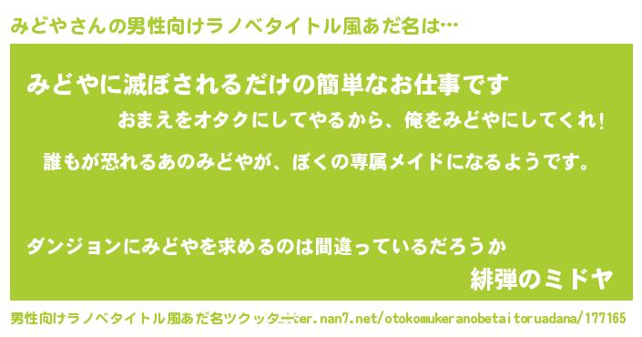 | ヘコむあだ名 | 『みどや(小並感)』『みどお』 |
