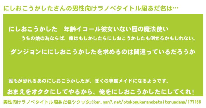 | 胡散臭い通販商品みたいなあだ名 | 『伝統あるサプリメント…その名も「にしおこうかした」』 |