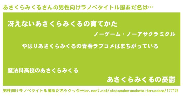 あさくらみくるさんの男性向けラノベタイトル風あだ名をツクッター!