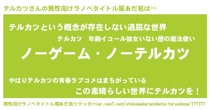 | 女子向けラノベタイトル風あだ名 | 『テルカツ恋絵巻』 |