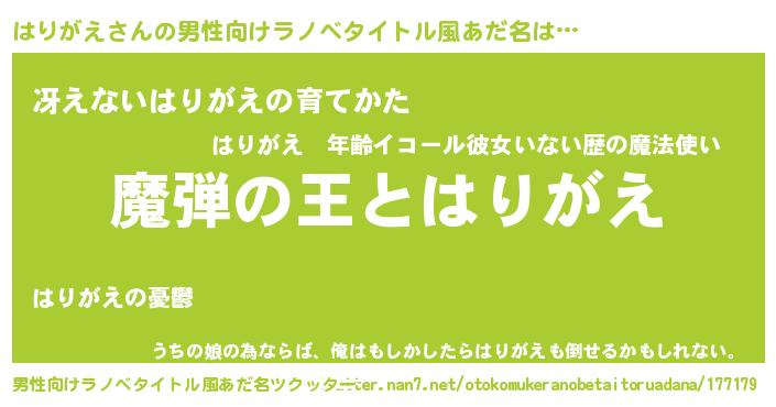 | ヒーロー風カッコイイあだ名 | 『仮面ハリダー』『ウルトラはりがえマン』 |
