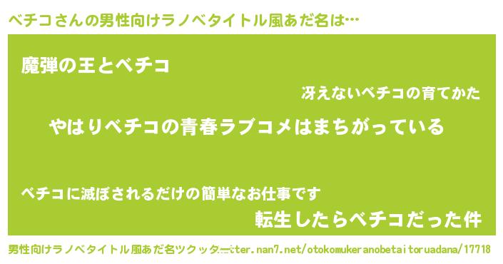 | ヒーロー風カッコイイあだ名 | 『ウルトラベチコマン』『仮面ベチダー』 |