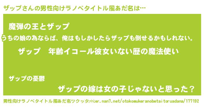 | 女子向けラノベタイトル風あだ名 | 『ザップの玉の輿計画!』 |
