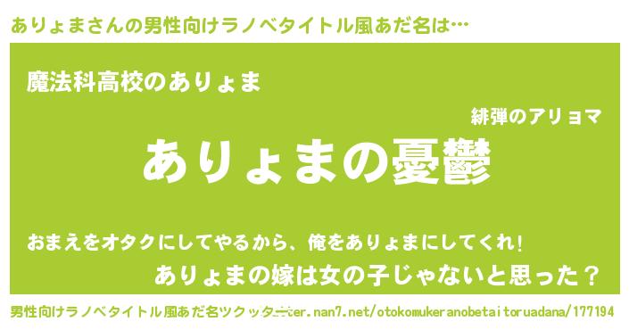 | 女子向けラノベタイトル風あだ名 | 『(仮)ありょまのやんごとなき事情』 |