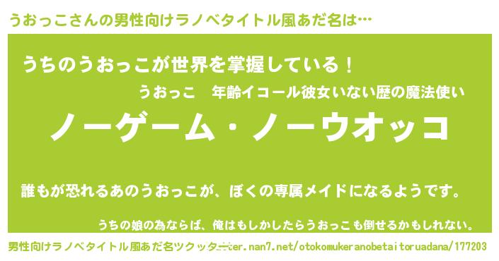| 女子向けラノベタイトル風あだ名 | 『死神うおっこの再婚』 |