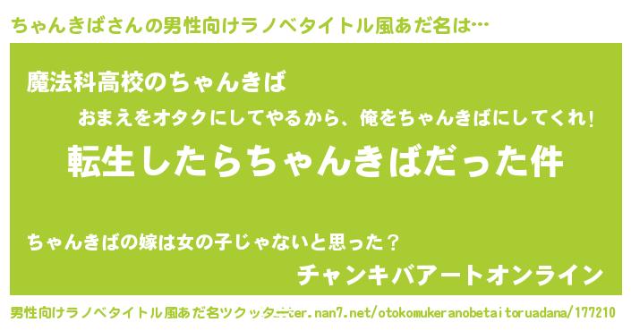| 胡散臭い通販商品みたいなあだ名 | 『テレビで話題のアガリクス…その名も「ちゃんきば」』 |
