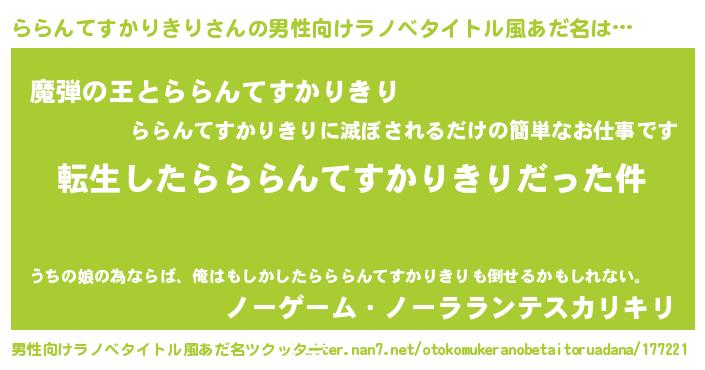 ららんてすかりきりさんの男性向けラノベタイトル風あだ名をツクッター!