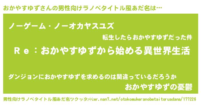 | 女子向けラノベタイトル風あだ名 | 『闇のおかやすゆず』 |