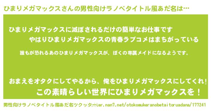 | 胡散臭い通販商品みたいなあだ名 | 『来世でも幸せになれる水素水…その名も「ひまりメガマックス」』 |