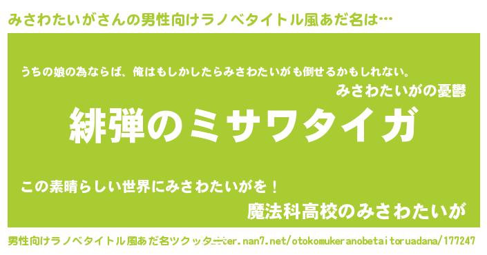 | 意味不明あだ名 | 『みさわたいがフォーエバー』 |