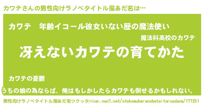 | 意味不明あだ名 | 『もやし科カワテ属』『自称カワテ』 |