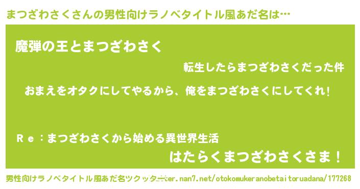 | 女子向けラノベタイトル風あだ名 | 『まつざわさく夫妻のなれそめ』 |