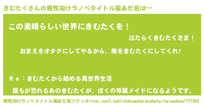 | ヘコむあだ名 | 『きむたく(爆)』『つくし』『きむお』 |