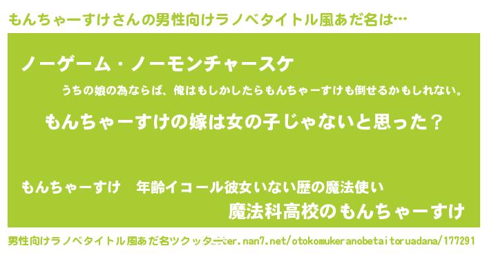 | 女子向けラノベタイトル風あだ名 | 『もんちゃーすけ様がみてる』 |