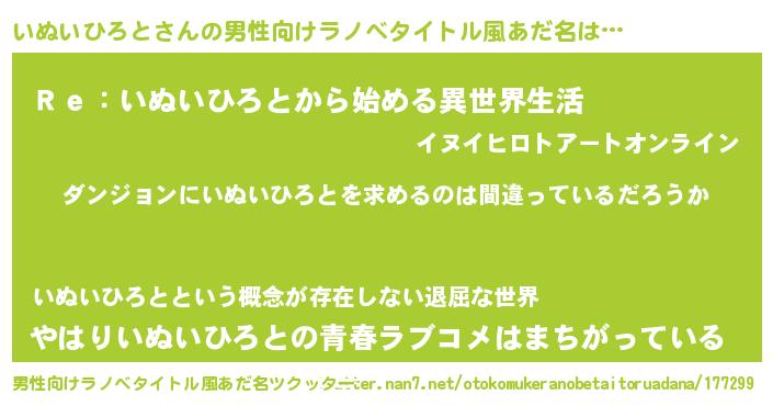 | 意味不明あだ名 | 『とにかく怪しいいぬいひろと』 |