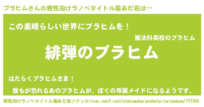 | 女子向けラノベタイトル風あだ名 | 『シンデレラブラヒム家の靴箱館』 |