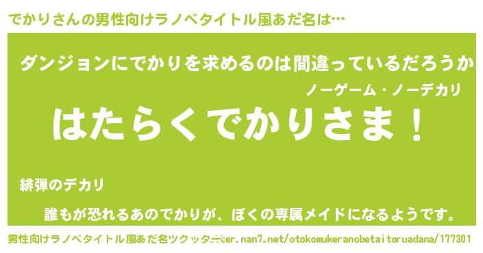 | 胡散臭い通販商品みたいなあだ名 | 『信頼と実績のサプリメント…その名も「でかり」』 |