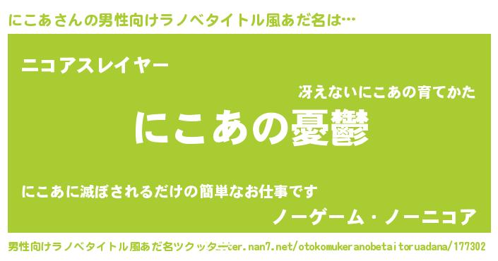 | 女子向けラノベタイトル風あだ名 | 『にこあ姫と円卓の騎士』『にこあ恋絵巻』 |