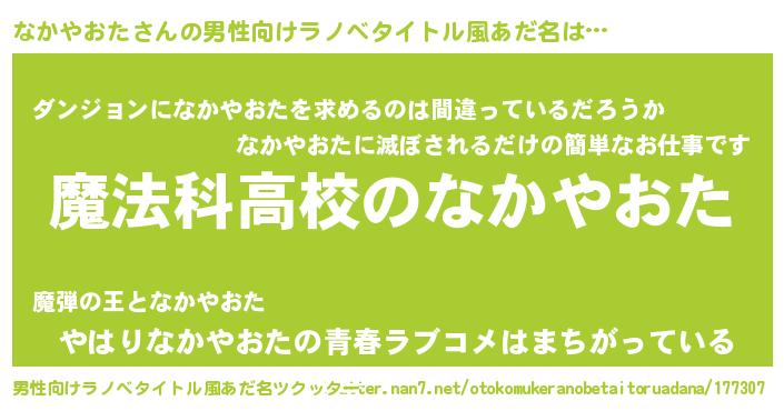 | 女子向けラノベタイトル風あだ名 | 『なかやおたなんてお断りですっ。』 |