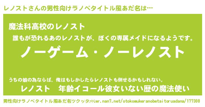 | 女子向けラノベタイトル風あだ名 | 『レノスト恋絵巻』『レノスト伯爵の花嫁』 |