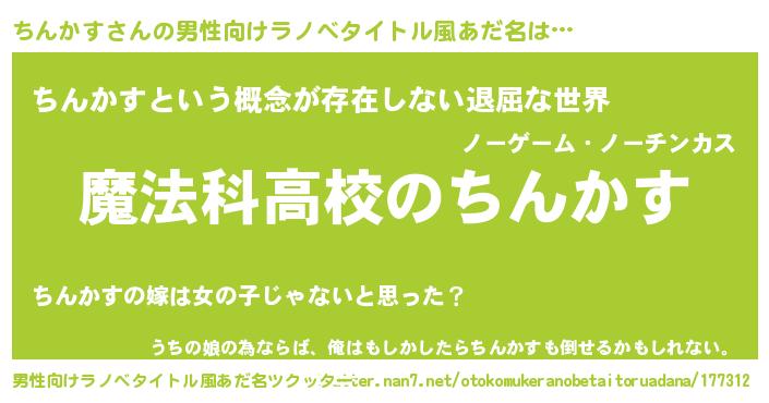 | 女子向けラノベタイトル風あだ名 | 『ちんかすなんてお断りですっ。』 |