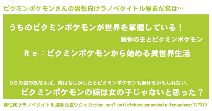 | 女子向けラノベタイトル風あだ名 | 『闇のピクミンポケモン』 |