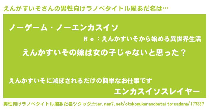 | 女子向けラノベタイトル風あだ名 | 『えんかすいそ様がみてる』 |