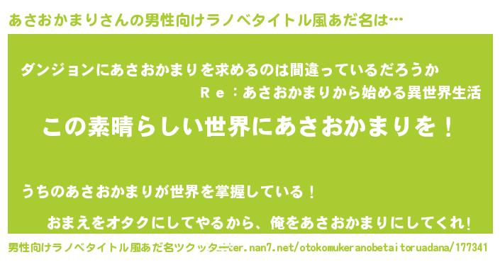 | 意味不明あだ名 | 『住所不定無職あさおかまり(77歳)』 |