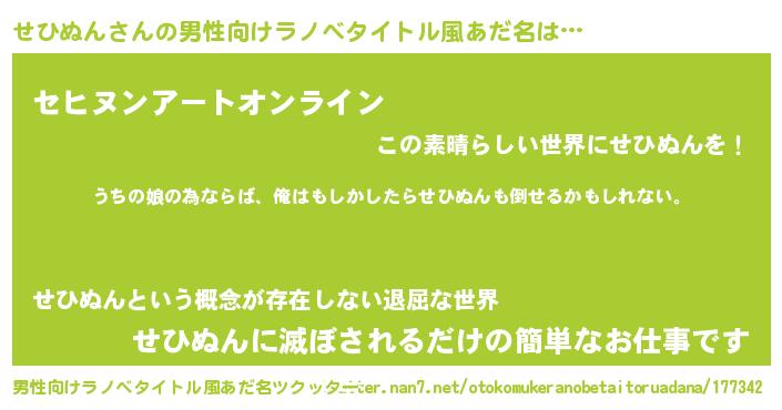 | 胡散臭い通販商品みたいなあだ名 | 『運命の人と巡り会える高級そうな絵画…その名も「せひぬん」』 |