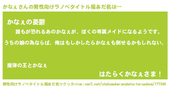 | ファンタジー風あだ名 | 『エターナルカナェー』『カナフェル』 |