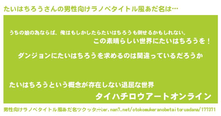 | 女子向けラノベタイトル風あだ名 | 『たいはちろうは平凡を望む』 |