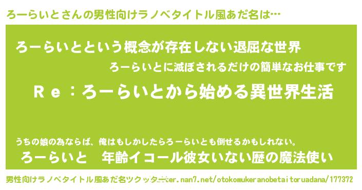 | 意味不明あだ名 | 『自称ろーらいと』『永久保存ろーらいと』 |