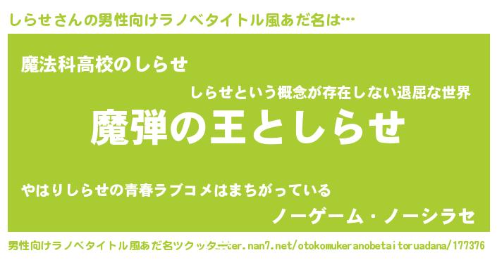 | 意味不明あだ名 | 『住所不定無職しらせ(8歳)』『自称しらせ』 |
