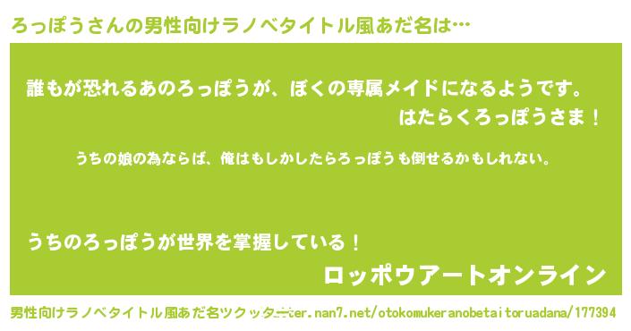| ファンタジー風あだ名 | 『エターナルロッポウー』『ロッフェル』 |
